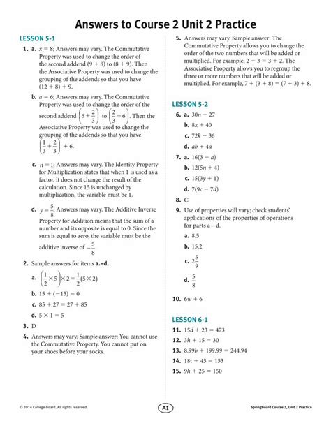 Free PDF Springboard Mathematics Course 1 Unit 2 Answers Kobo Gutenberg